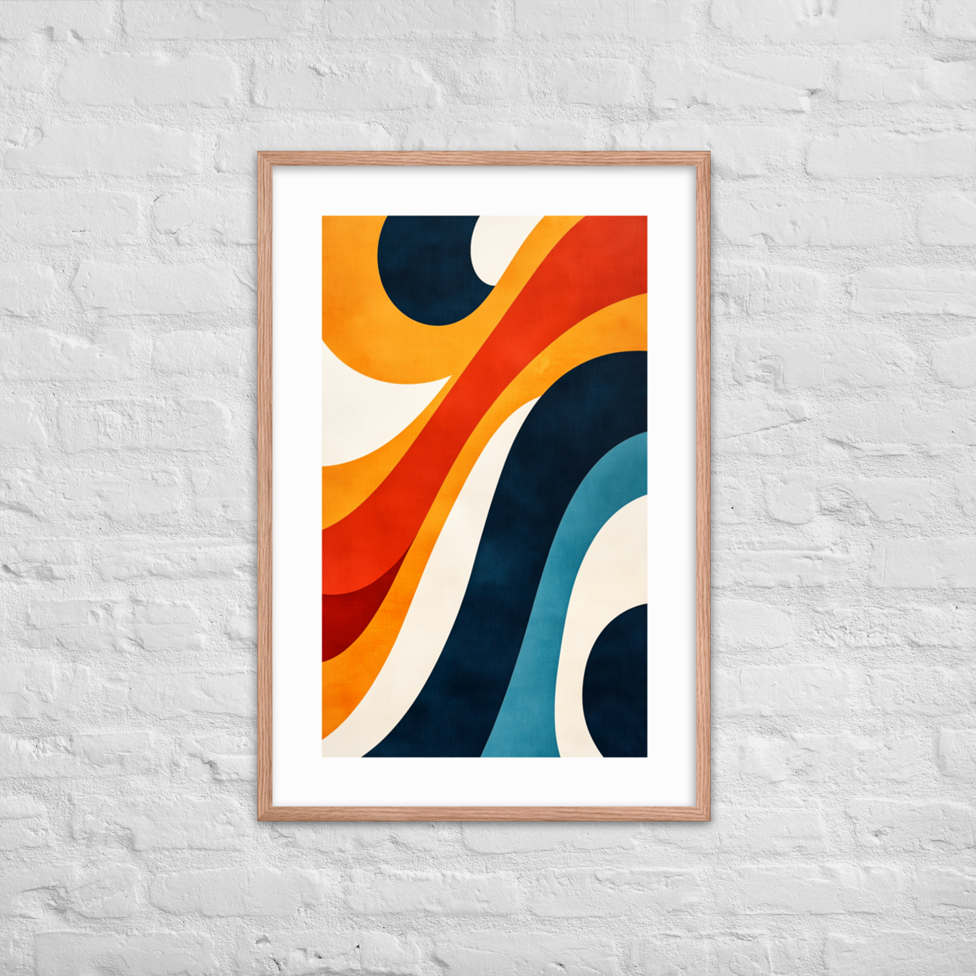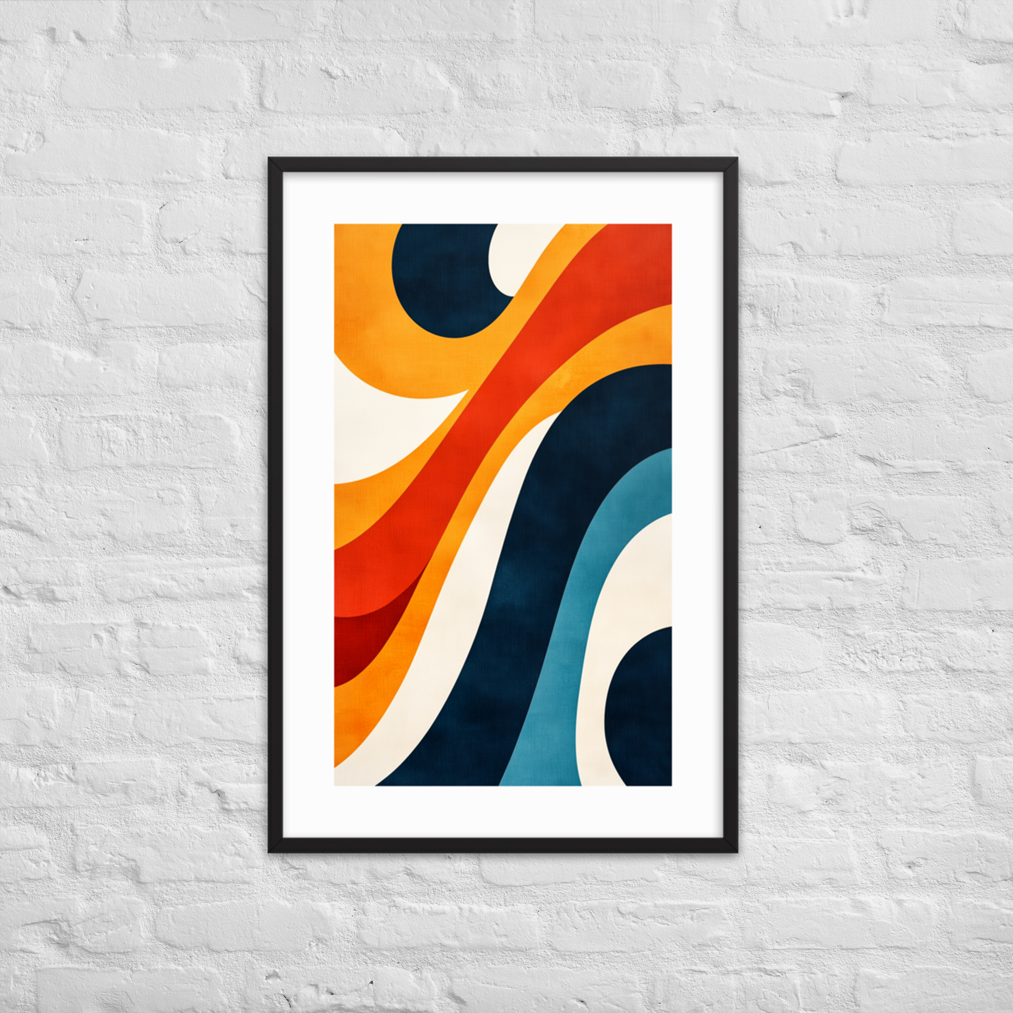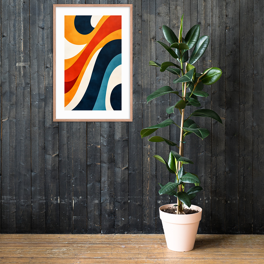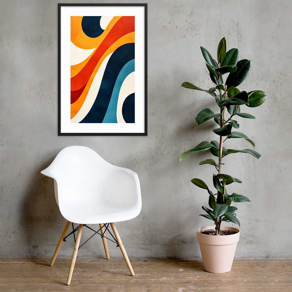 This abstract art print features dynamic waves and curves in bold colors, making it a perfect addition to modern and mid-century decor. Ideal for living rooms, offices, or bedrooms, it adds movement and charm to any space.