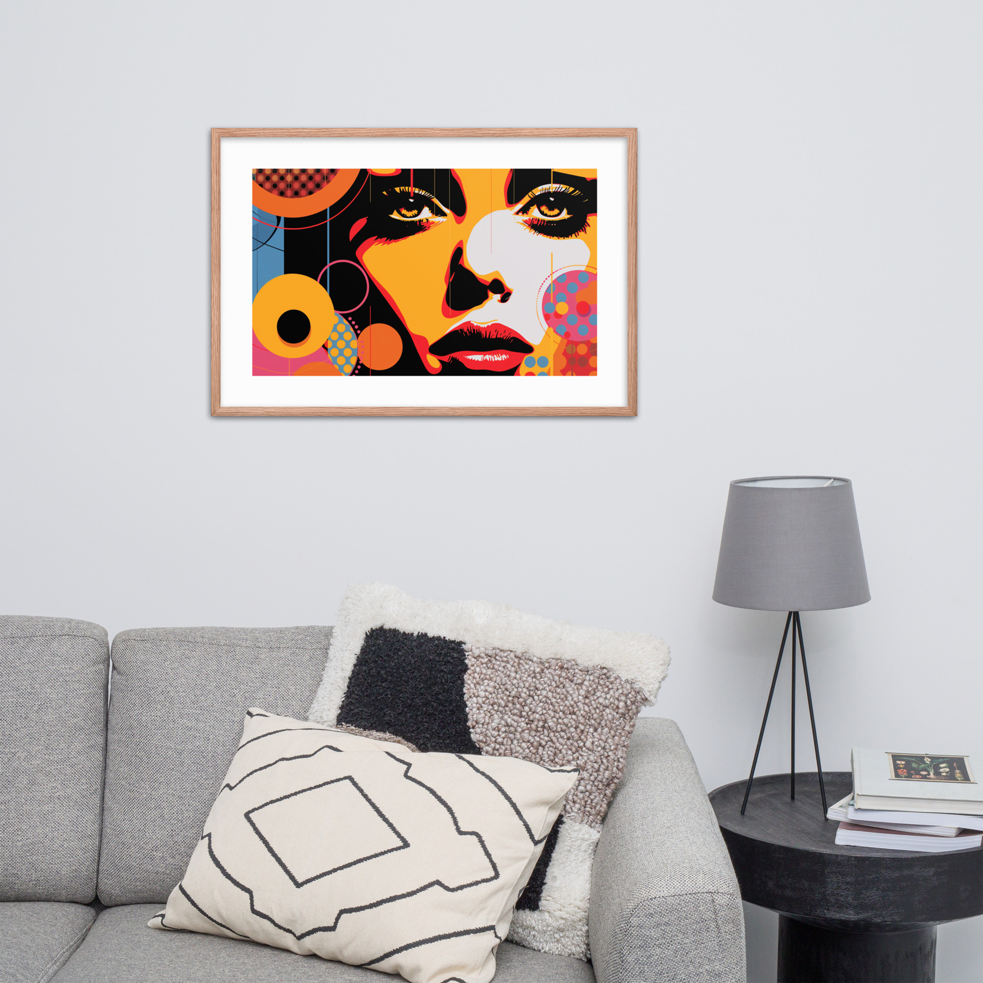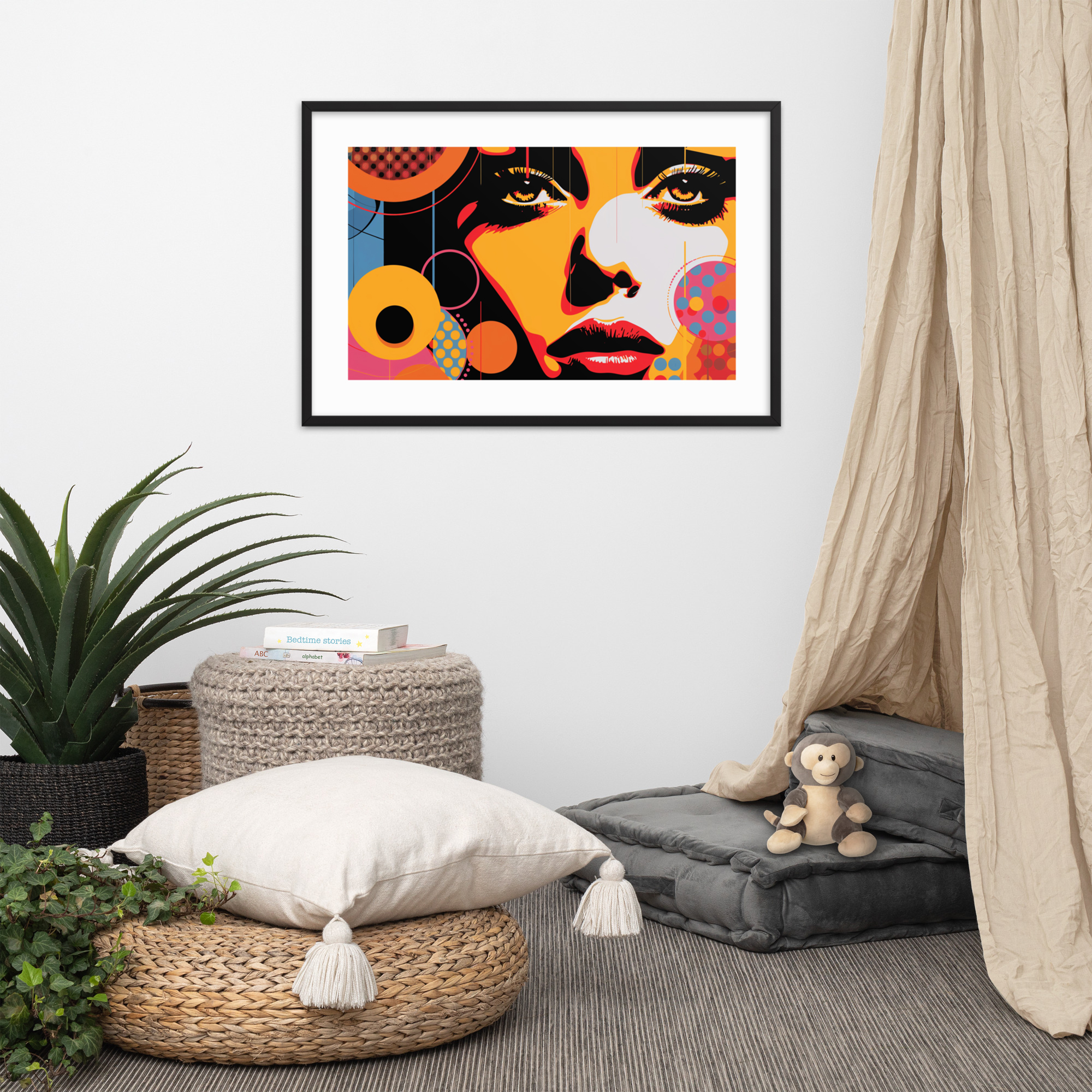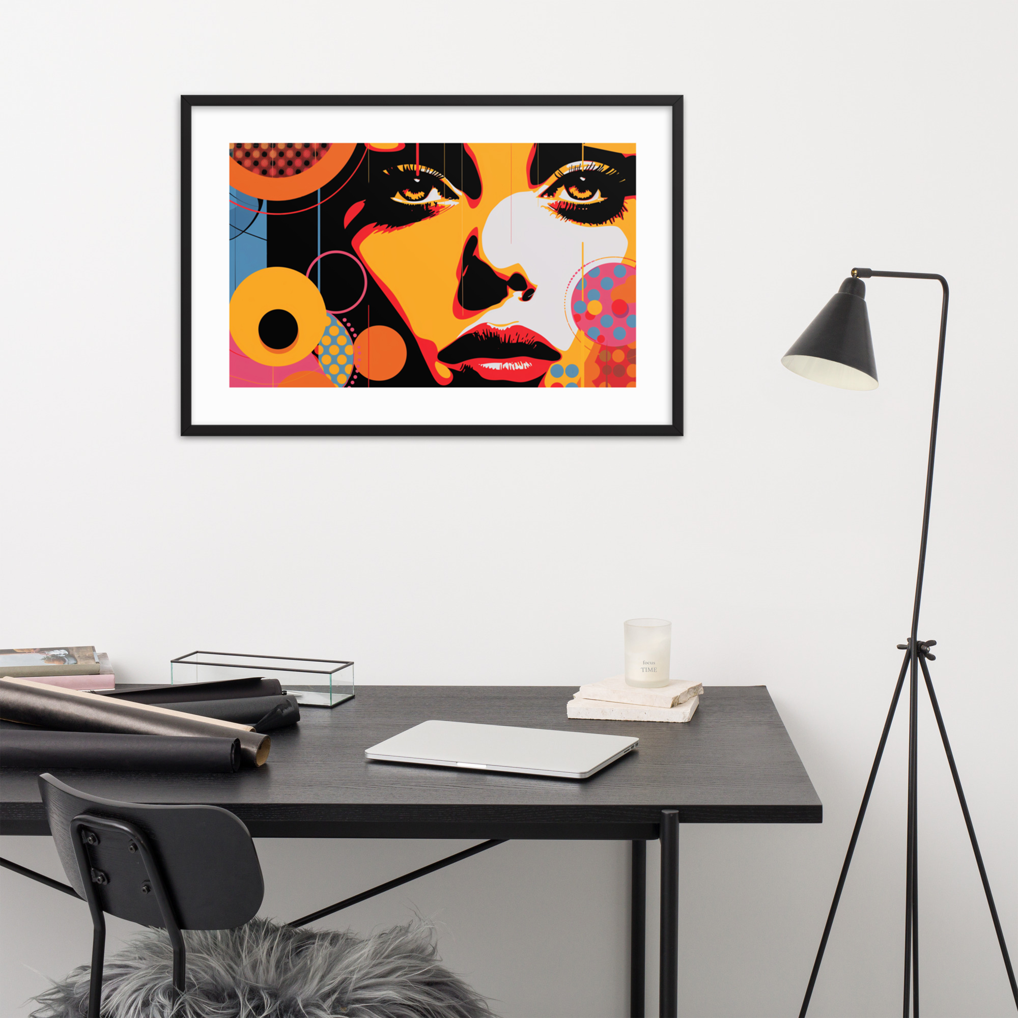 This vivid pop art portrait features striking geometric patterns and bold colors, making it a true statement piece. Perfect for modern decor lovers, this framed artwork adds energy and artistic flair to any space. Display it in your living room, office, or hallway to impress your guests.