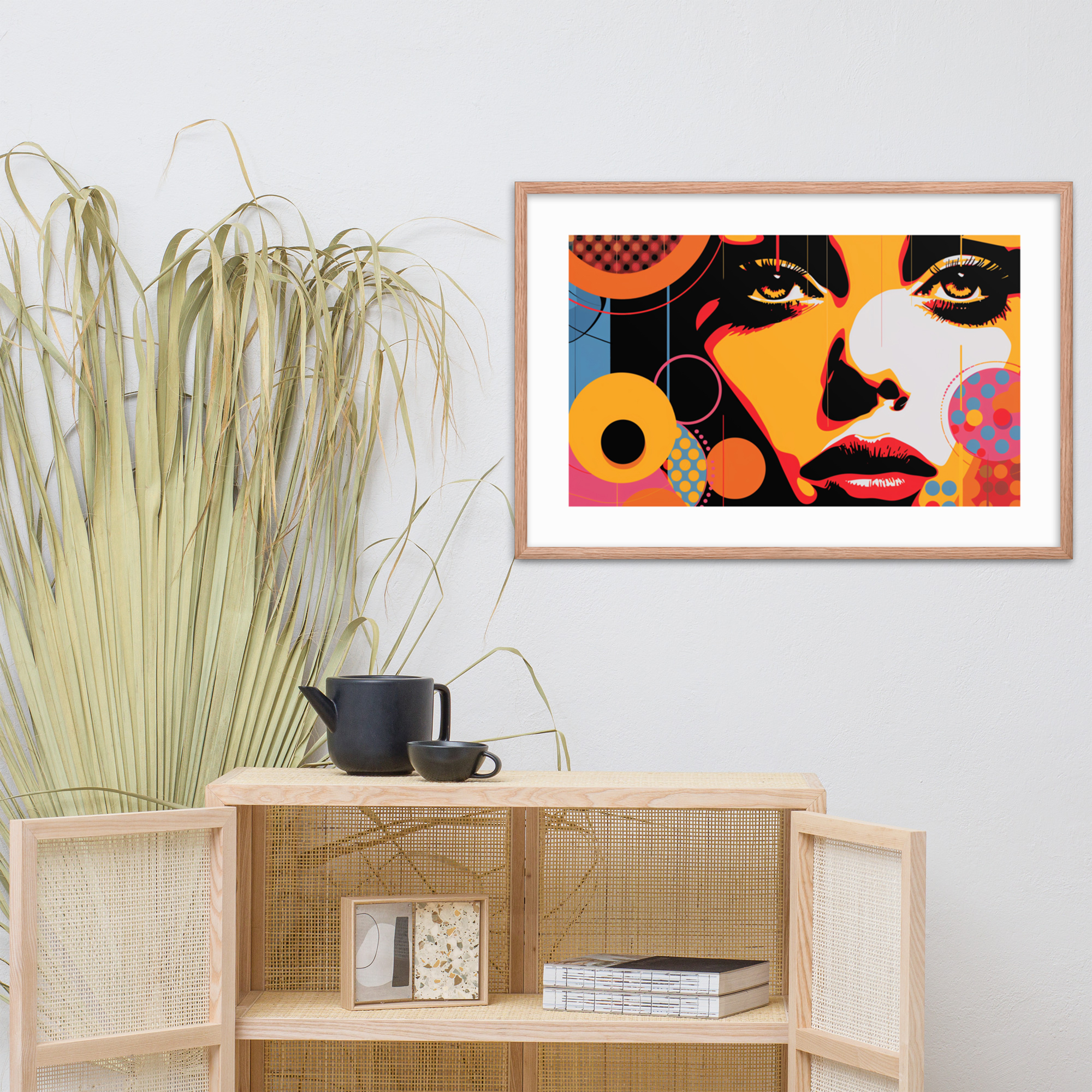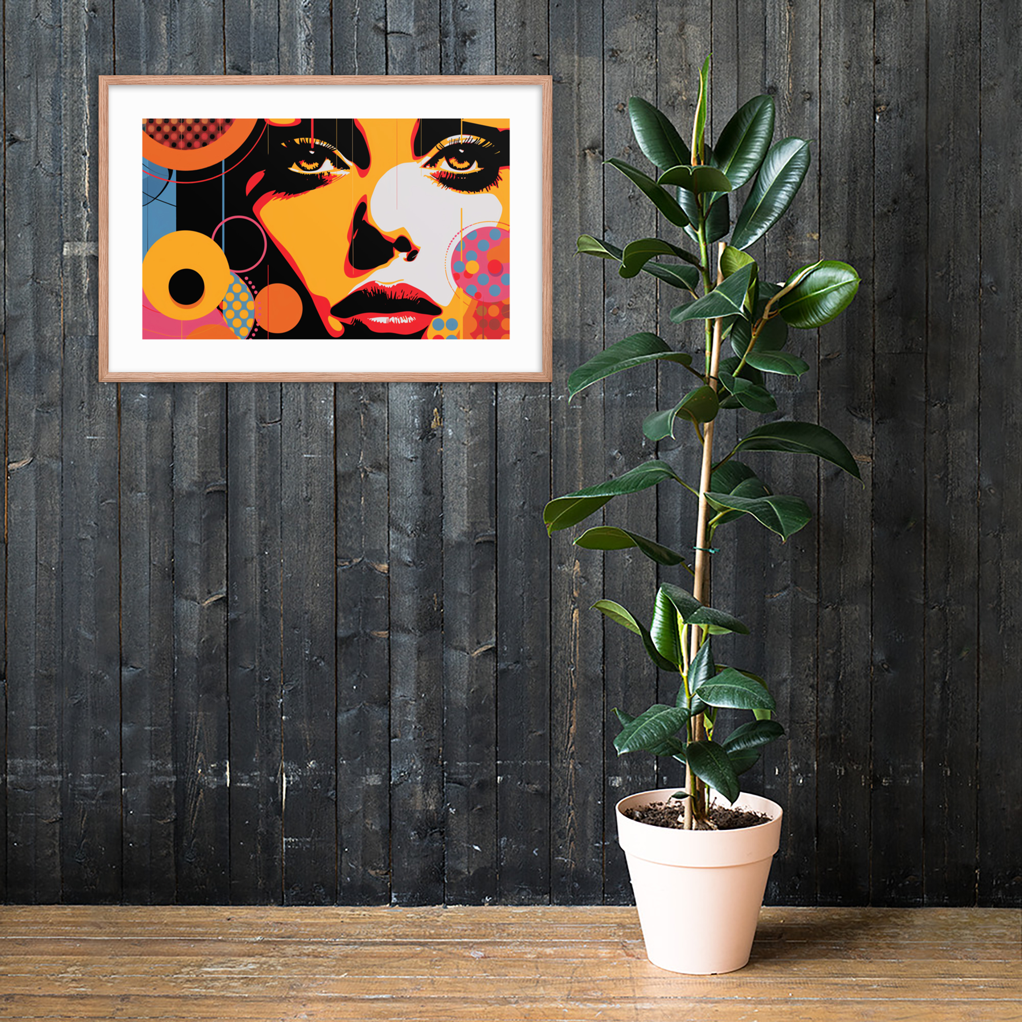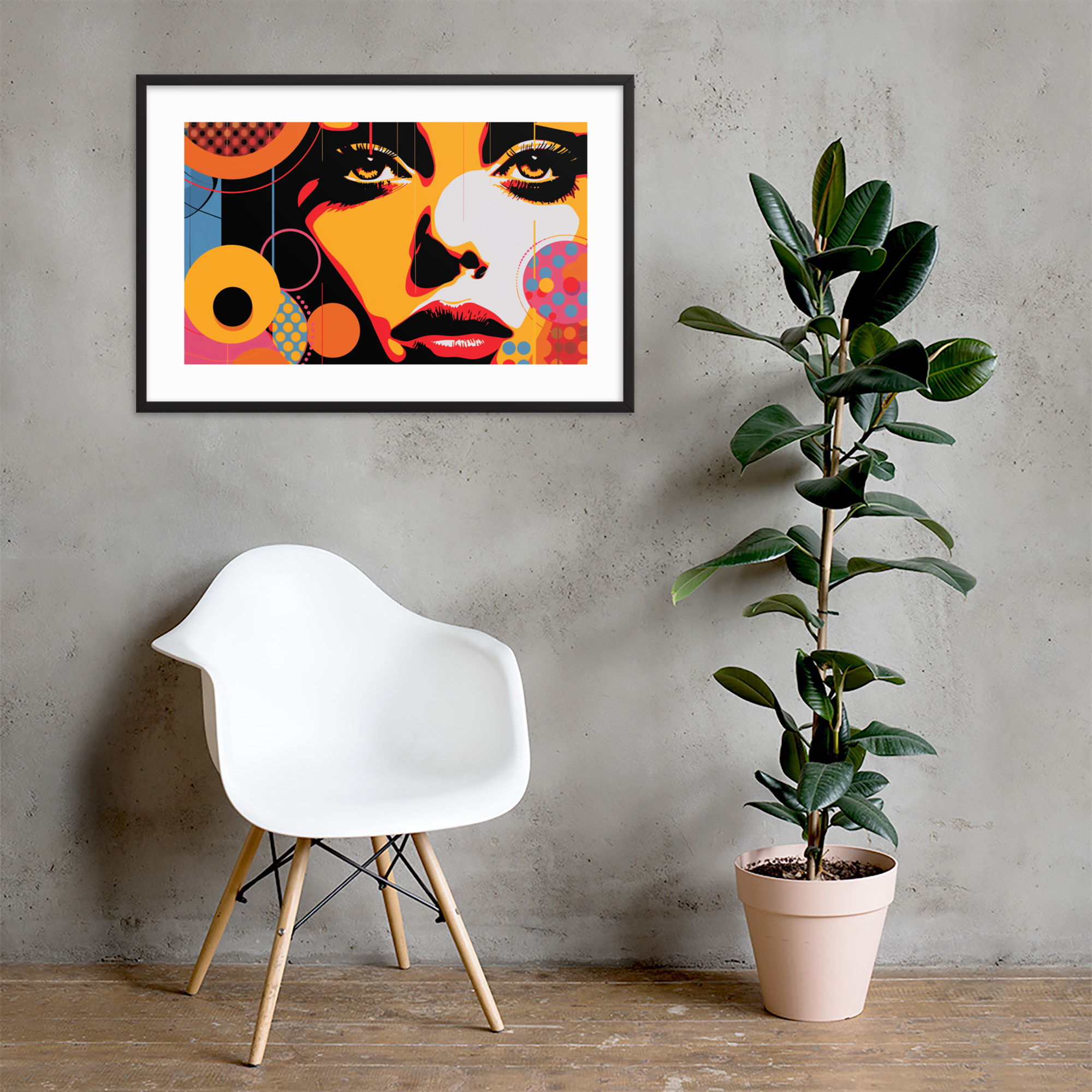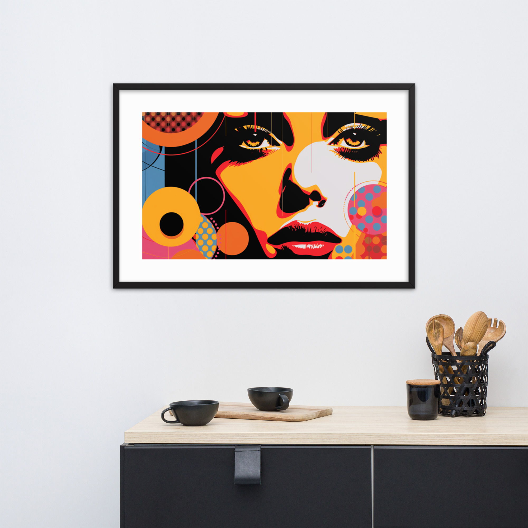 This vivid pop art portrait features striking geometric patterns and bold colors, making it a true statement piece. Perfect for modern decor lovers, this framed artwork adds energy and artistic flair to any space. Display it in your living room, office, or hallway to impress your guests.